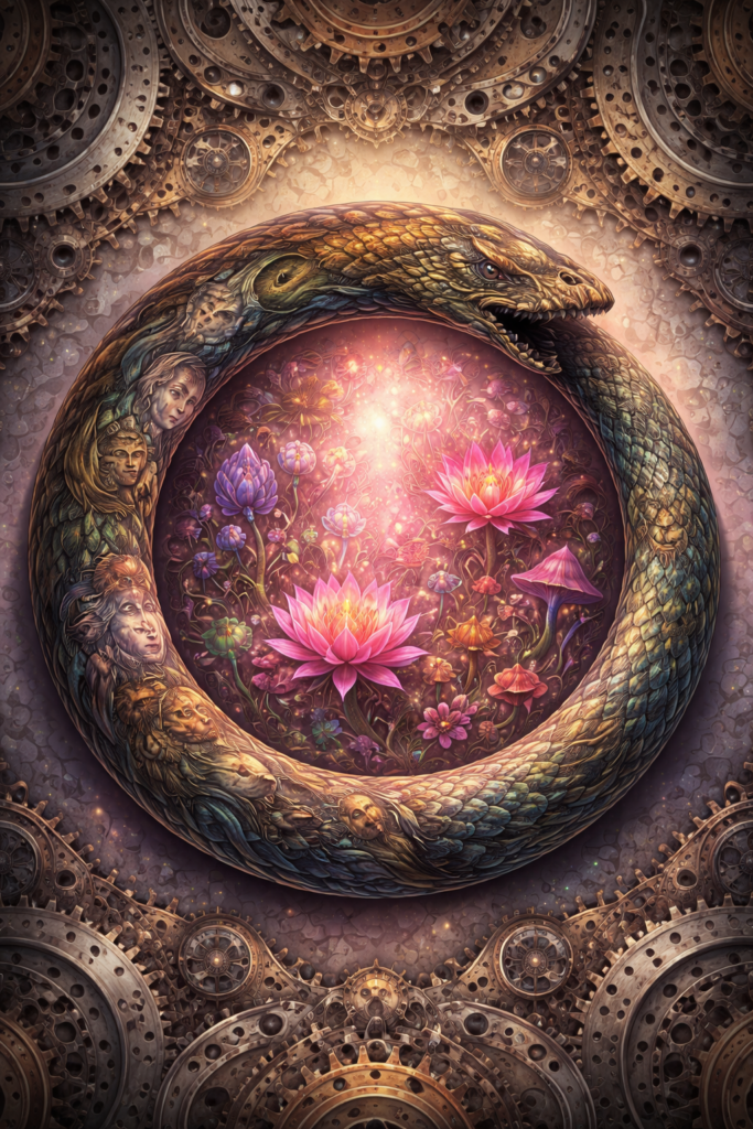 On peut aussi faire l’hypothèse inverse, à savoir que parfois on a assez cheminé, mais on tourne en rond. On est “prêt” à affronter quelque chose, ou à s’amuser autrement, mais on est coincé sur une boucle stérile: dans ce cas, la psilocybine peut certainement bousculer et faire sortir de l’ornière – bien mieux qu’en thérapie, bien plus vite, par sa brutalité et son chaos. Reste que même mise en mots, même pensée, l’expérience ne se laisse pas contenir aisément. Elle se poursuit, comme une pression de fond, et l’abîme continue de nous regarder.
